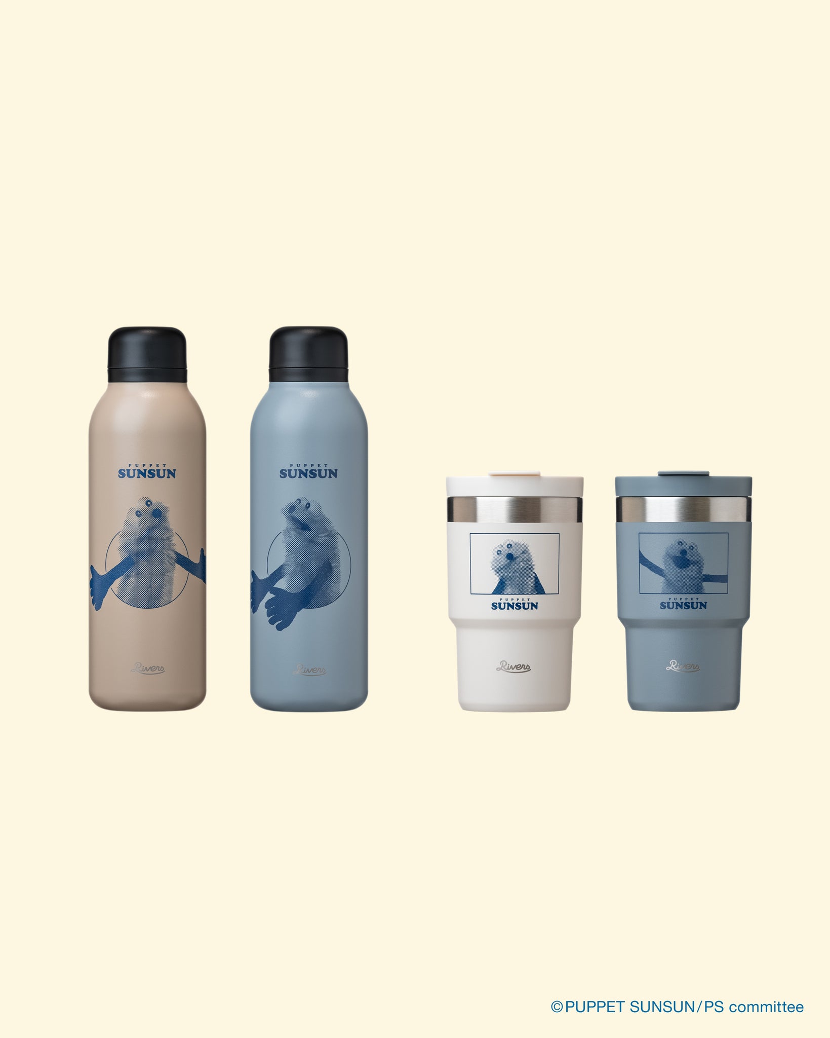 まさかのコラボ! 人気キャラクター「パペットスンスン」とリバーズの限定ドリンクウェアが登場。無駄を削ぎ落としたシンプルなフォルムのボトルに、スンスンをプリント。ボトルを傾けると、まるでスンスンが飲む人の顔をのぞき込んでくるようなユニークなデザインになっています。500mlサイズながらわずか200gと軽量で、通勤や通学にもぴったりの1本です。