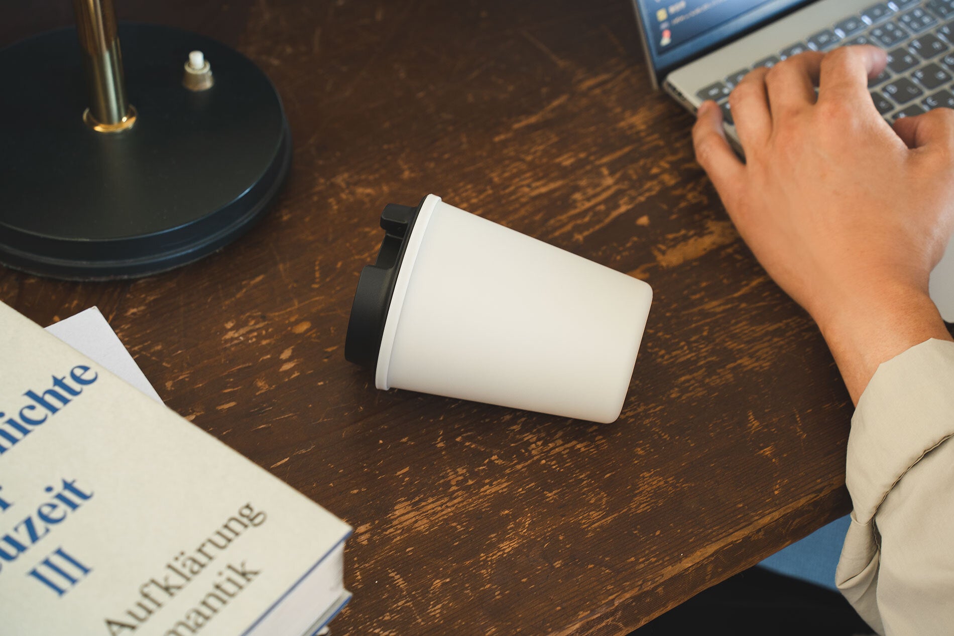 実容量300mlというサイズは、コーヒー2杯分ほど。そのため、1杯のテイクアウトカップをイメージしていると、女性や手の小さな方には、最初少し大きく感じられるかもしれません。しかし、日常使いにはこのサイズが絶妙との声も。